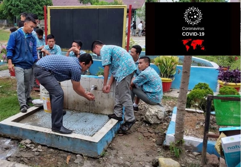 kegiatan mencuci tangan siswa/I kelas XII sebelum dan sesudah UN dilaksanakan